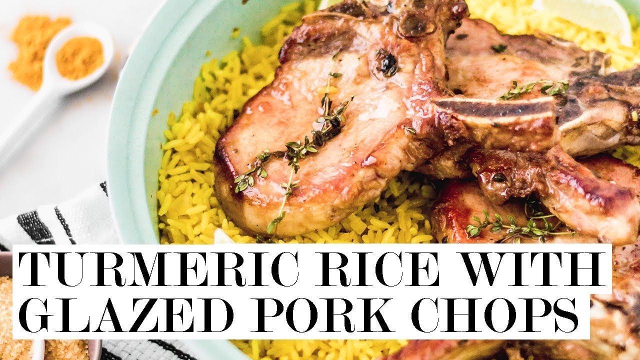 I love the colour the turmeric give the rice! It looks 500 times more appealing than plain white rice and has a ton more flavour too. The sweet taste form the pork chops makes a really good match with the turmeric as well.