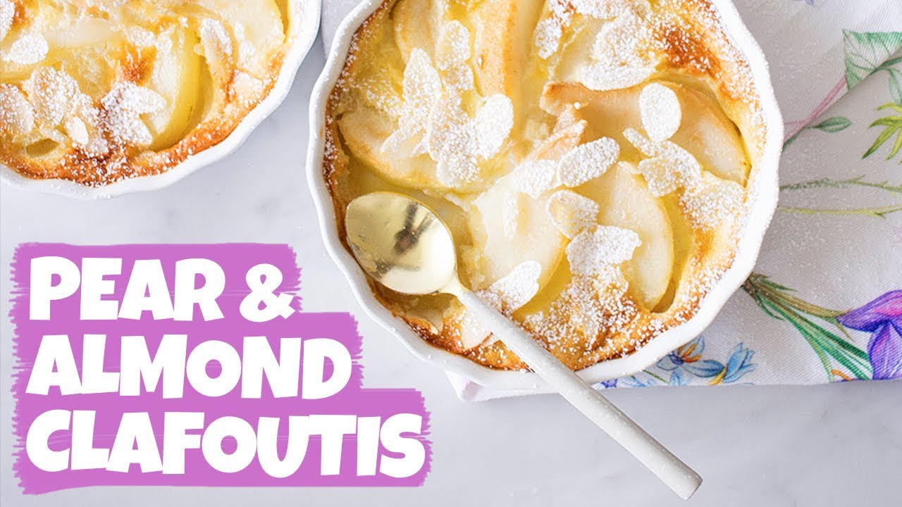 - If you're making a large pie dish, make one layer of pears at the bottom, then fill the dish half way through and layer more pears on top nicely. If you're making individual dishes like me, pour the mix halfway through and layer the pears on top making a circle. For more details watch the video above.